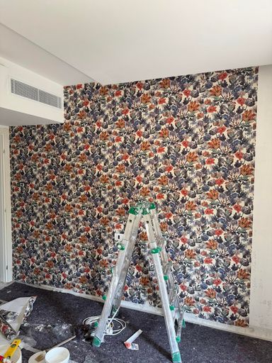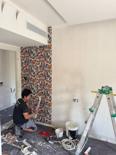 Abbiamo ricevuto la chiamata da Marco e la sua compagna per la ristrutturazione di casa di cui posare questa carta da parati. Abbiamo prima staccato la vecchia carta che c'era sulla parete, preparato il muro per l'alloggio di quella nuova e poi abbiamo terminato con un lavoro a regola d'arte.